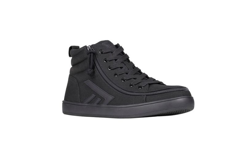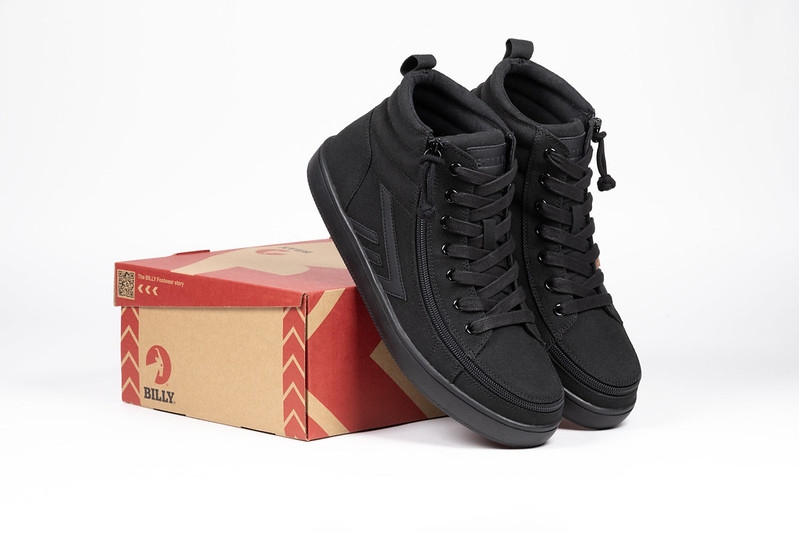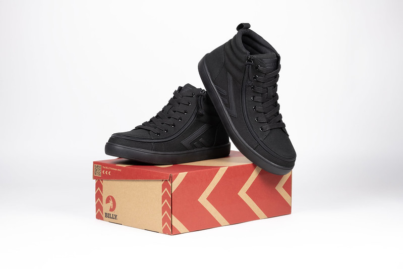 Los zapatos Billy Footwear Black To The Floor CS Sneaker High Tops son modernos, cómodos y funcionales, con un sistema de cremallera especial y único. La particularidad de este sistema de abertura es que toda la parte delantera y superior del zapato se abre con la ayuda de una cremallera, lo que nos facilita ponernos y quitarnos el calzado de manera sencilla. Están diseñados especialmente para niños y adultos con necesidades especiales que utilizan o no órtesis, férulas, DAFO o plantillas.